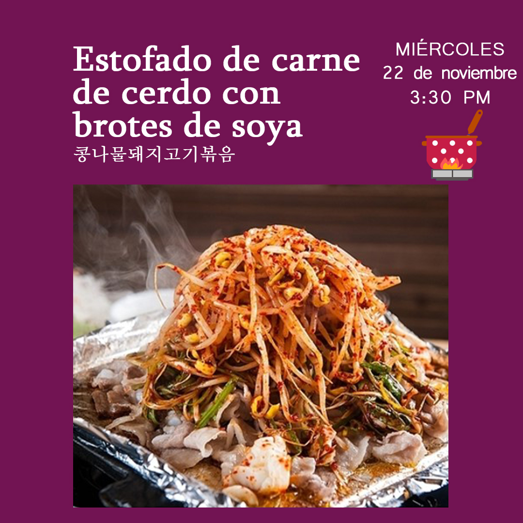 [Convocatoria] Taller de Cocina Coreana: Estofado de carne de cerdo con brotes de soya (콩나물돼지고기볶음)