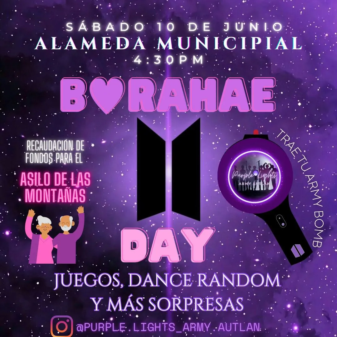 PURPLE LIGHTS ARMY AUTLAN llevó acabo el «Borahae Day», un evento para festejar los 10 años de BTS y el nacimiento del fandom. Otra de las intenciones del evento fue recaudar fondos para los adultos mayores del asilo de Las Montañas.