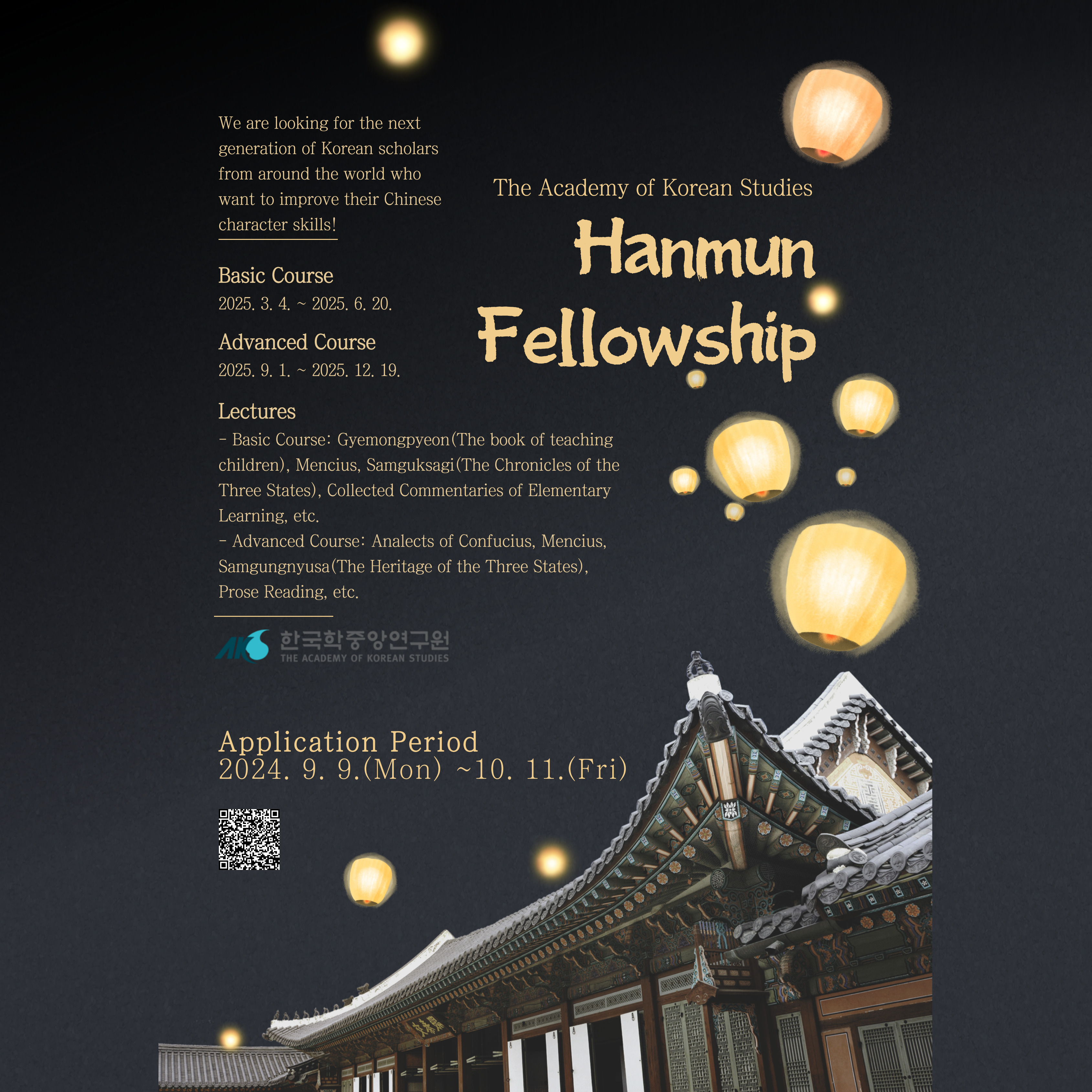 La Academia de Estudios Coreanos (AKS) se complace en anunciar la convocatoria para la "Beca AKS Hanmun (Chino Clásico)." Como parte de su misión de formar académicos que promuevan y globalicen los estudios coreanos, han establecido la "Beca AKS Hanmun 2025" para académicos internacionales en este campo. Se invita a aquellos interesados en unirse al programa en AKS, un centro mundial de estudios coreanos.