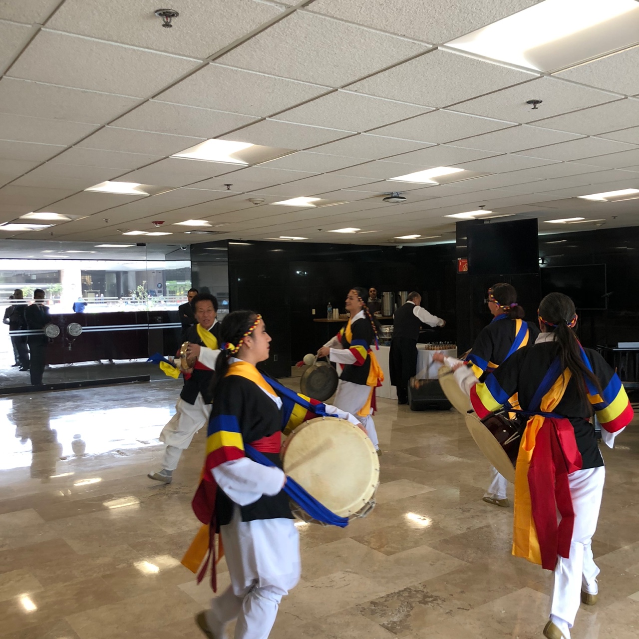 la ceremonia también hubo una representación de música tradicional coreana Samulnori