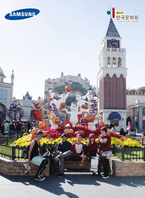 Luego nos dirijimos al parque de diversiones de Everland, promocionado por 2PM, Miss A y Psy. Está ambientado como una ciudad de cuentos de hadas, con torres y molinos, fuentes y muchos árboles. Corrimos como desquiciados hacia la montaña rusa más grande y valió la pena, porque fue un juego que nos quitó el aliento. Luego entramos al laberinto de terror, que tenía una historia sobre científicos locos experimentando en personas que eventualmente murieron en una casa antigua. Nos persiguieron mucho, ¡y fue muy divertido! Pudimos también observar varios de los animales, pingüinos, osos polares, monos, antes de regresar a Seúl, en donde, entrando a la ciudad, pudimos observar el hermoso puente Banpo, conocido por sus luces de arcoíris.