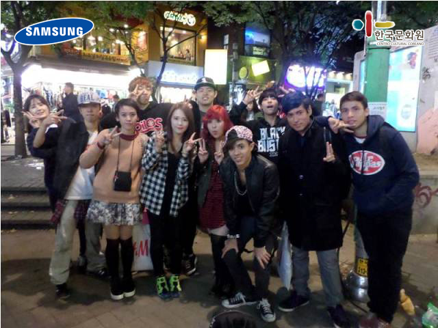 Luego fuimos al concierto holográfico de YG, una experiencia visual muy interesante, porque es como si tuvieras a los artistas a pocos metros de distancia, además de poder bailar y convivir con los bailarines y finalmente fuimos a los centros comerciales de Dongdaemun, donde venden mucha ropa de moda y souvenirs. La gente en Seúl se arregla mucho, siempre traen su estilo muy bien cuidado y la ropa a la moda. Contrario a lo que nosotros pensábamos, hay muy poca gente con el cabello de color diferente al negro, y siendo que nosotros traemos cabello azul, rojo o verde, aparte de no ser asiáticos, llamábamos mucho la atención. Cenamos los populares “fideos negros” (Jangjangmyeon) antes de regresar al hotel, para después salir a pasear y descubrir el arroyo Cheonggyecheon, que está decorado con senderos de paseo, cascadas, piedras para cruzar, obras artísticas, convirtiéndolo en una zona muy romántica.