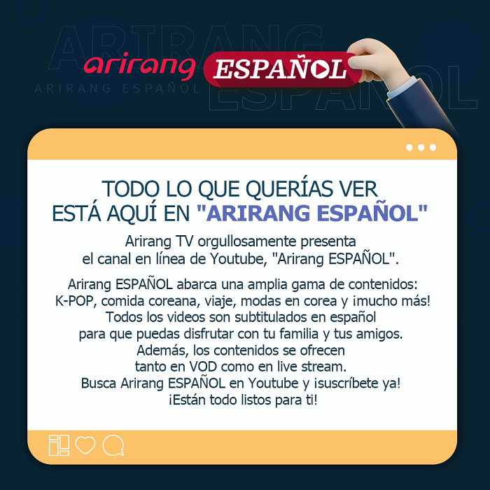 아리랑 국제방송은 중남미 15개국과의 수교 60주년을 맞아 중남미와 유럽 21개국 약 5억 명 스페인어권 시청자를 대상으로 한국에 대한 소식과 문화가 널리 전해지기를 바라며 스페인어 온라인 채널 Arirang ESPAÑOL을 유튜브에 론칭하였습니다.