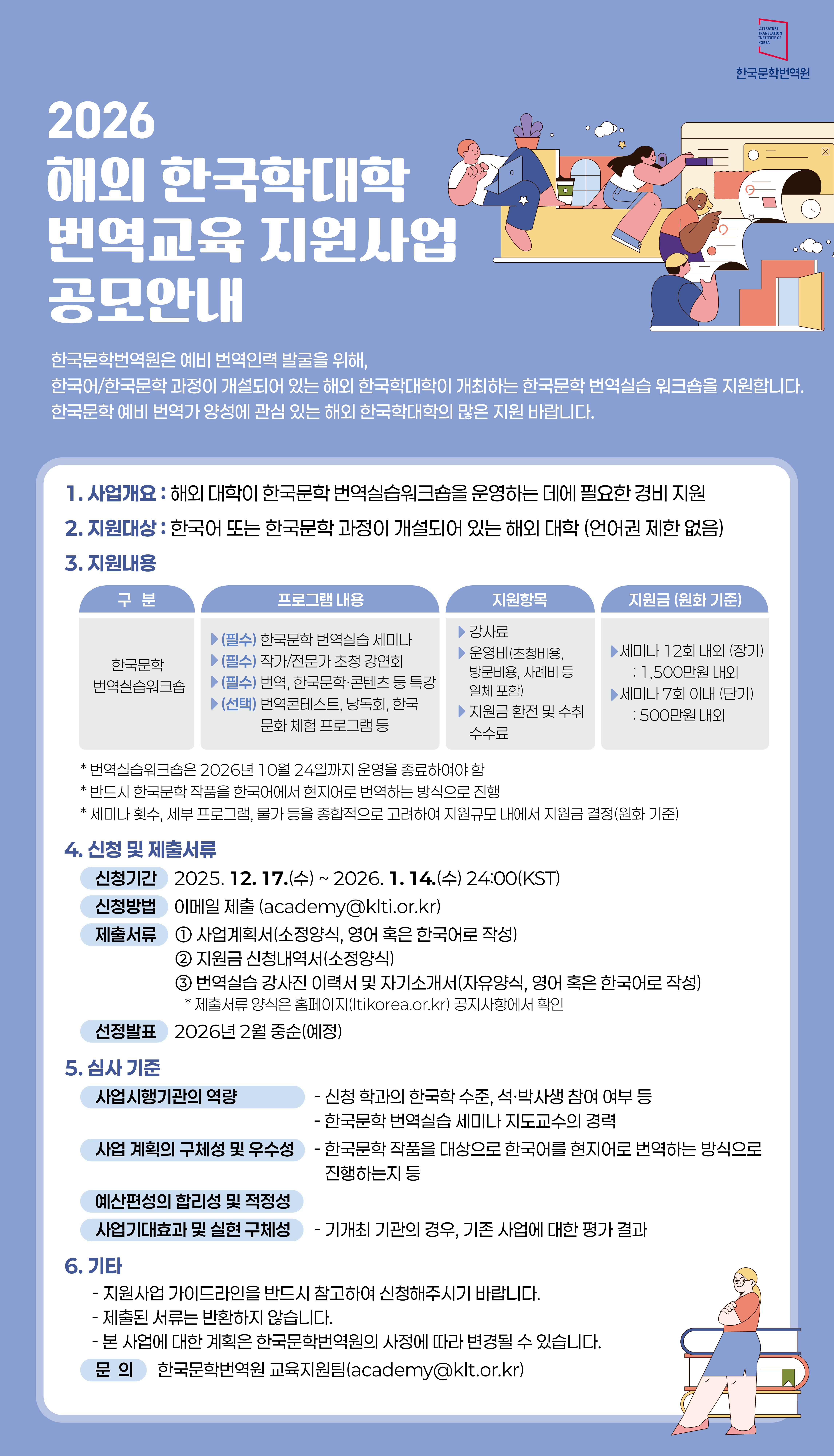 [한국문학번역원] 2026 해외 한국 대학 번역교육 지원사업(~1/14)